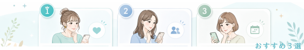 まずは比較ランキングです。次に、アプリとの違い、安全な使い方、プロフィール設計の順で見ると流れが分かりやすいです。